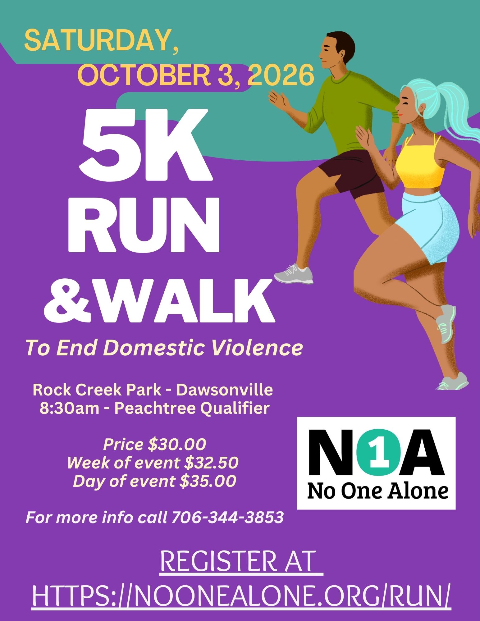 Join us for our 3rd annual 5k Run/Walk to End Domestic Violence at the Beautiful Rock Creek Park in Dawsonville. This event is a Peachtree Qualifier and Finisher Medals will be given.